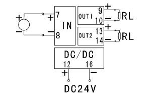 例:ISOL-12A 即输入为4-20mA,输出1、2都为4-20mA