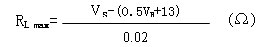 仪表负载电阻RL的大小,取决于仪表的显示方式、电源电压VS和电源电压纹波VR的大小,对于指针式显示仪表,其公式如下: